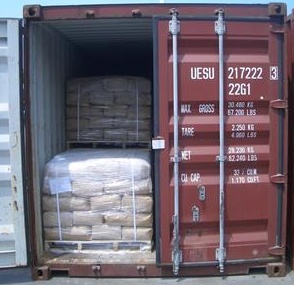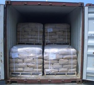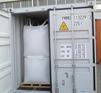 Photos of loading fused silica, which are packed in woven bags: